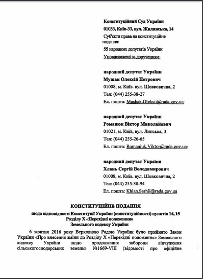 Запроданці з провладних фракцій звернулися до Конституційного суду України з поданням про визнання неконституційним мораторію на продаж землі. Ініціатором виступив негідник Олексій Мушак.