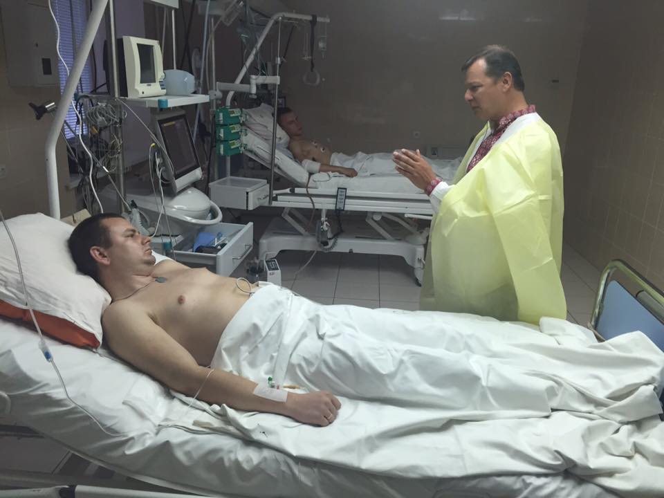 Народний депутат України, лідер Радикальної партії Олег Ляшко відвідав у військовому госпіталі постраждалих від теракту під Верховною Радою правоохоронців.