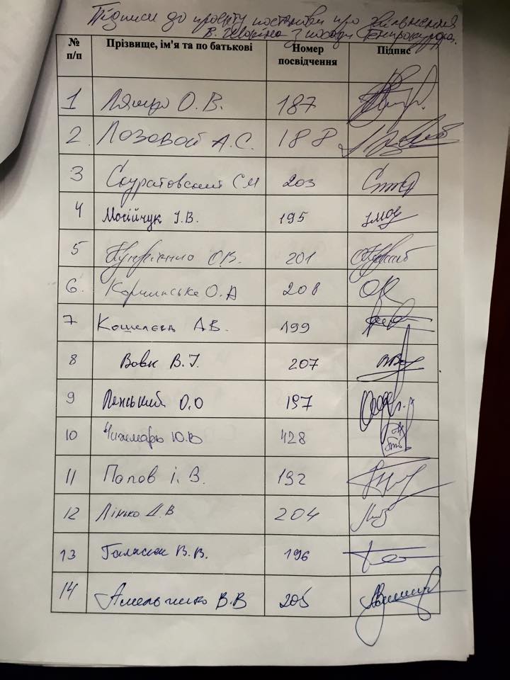 За ініціативою лідера Радикальної партії Олега Ляшка депутати всього за півгодини зібрали понад півсотні підписів за відставку Генпрокурора Шокіна. Бажаючих поставити свій підпис виявилося так багато, що вони навіть шикувалися в черги.