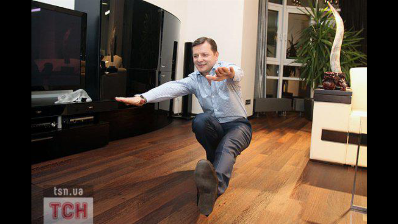 «Ще можу на одній нозі присідати так, що ніхто не присяде. Покійний мій шкільний вчитель фізкультури, царство йому небесне, змушував і по 5-10 км бігати, і на лижах ходити, і підтягуватися. Я йому за це вдячний», - зазначив радикал.