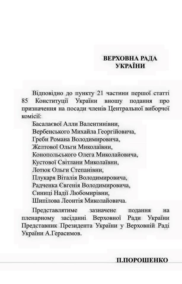 Нагадаємо, гарант пропонує Верховній Раді звільнити 12 із 15 членів ЦВК і одночасно призначити 11 нових.