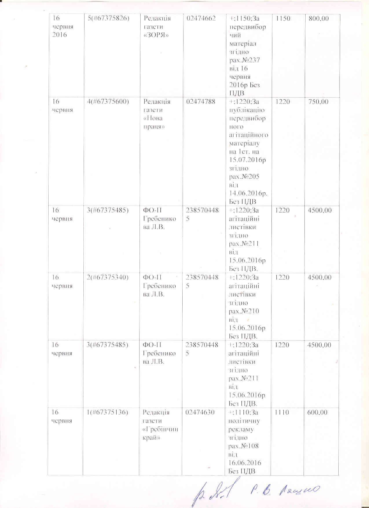 Звіт про надходження та використання коштів виборчого фонду кандидата у народні депутати України в одномандатному виборчому окрузі № 151 Ляшка Руслана Віталійовича на проміжних виборах народних депутатів України 17 липня 2016 року.