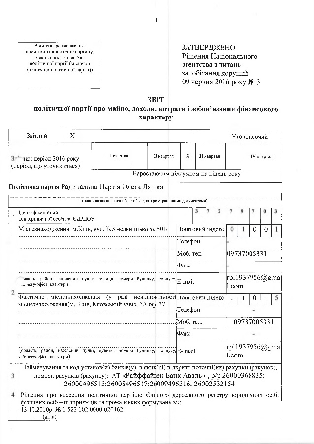 <p>Детальний фінансовий звіт Радикальної партії Олега Ляшка за ІІІ квартал 2016 року. </p>