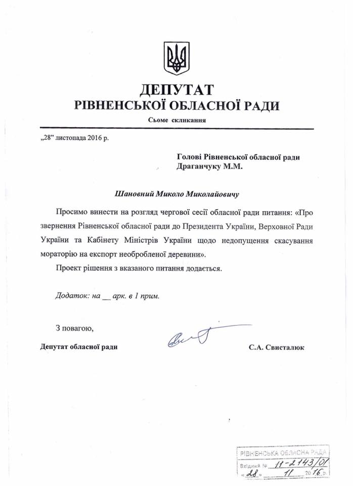 Аналогічне звернення так зареєстрували депутати від РПЛ Рівненської та інших обласних рад.