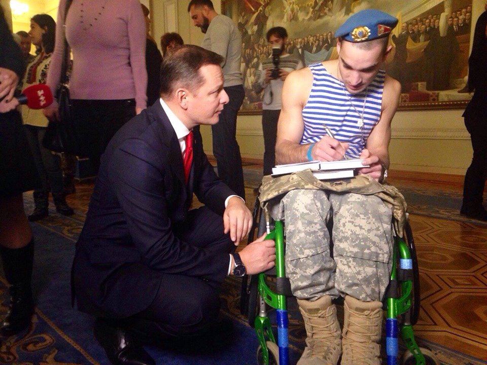 В перерві пленарного засідання лідер Радикальної партії Ляшко підійшов до хлопця в інвалідному візку, якого помітив у кулуарах. Виявилося, хлопця звати Сергій Калитюк, він служив контрактником у 25-й Дніпропетровській окремій повітряно-десантній бригаді. Поблизу Ямполя Донецької області їхня колона потрапила під обстріл. Сергій отримав тяжкі поранення, зараз самостійно не може пересуватися.