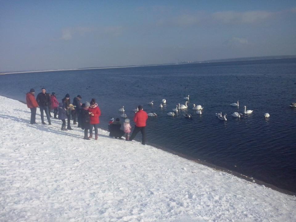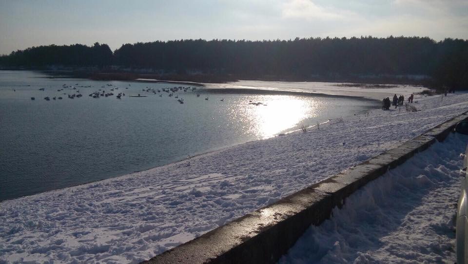 Лебеді щороку прилітають на зиму на водосховище ХАЕС у Острозі. І цьогоріч місцеві мешканці помітили, що нещасні птахи не тільки мерзнуть, а й голодують. За словами місцевої жительки, зграя лебедів за одну хвилину з'їла цілу буханку хліба.