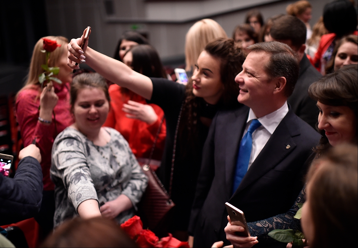 «Ніколи не бачив стільки жінок одразу, наче у квітнику. Місце жінки у нашому серці, а не тільки на кухні. Якщо разом з чоловіком є мудра жінка, то він усього доб'ється. Без жінок не вдасться змінити країною», - звернувся до жінок політик.