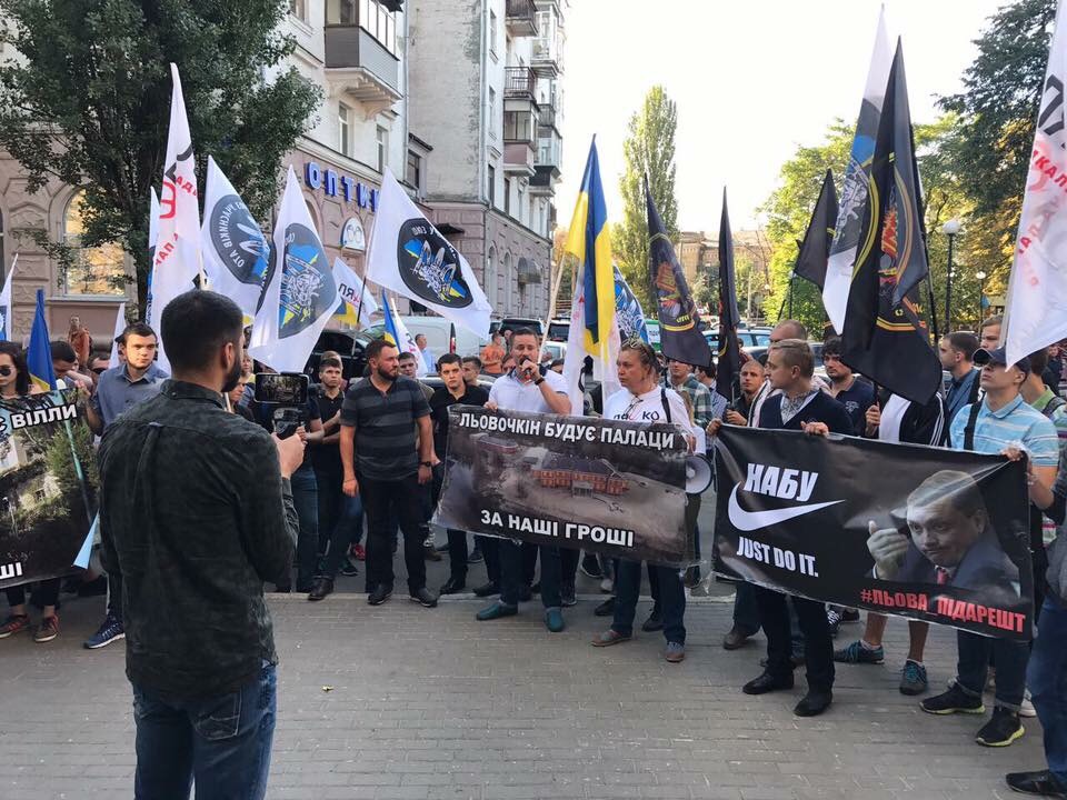 Народні депутати Андрій Лозовий, Ігор Мосійчук, Дмитро Лінько та Євген Дейдей разом із активістами громадських організацій "Національно-визвольний корпус", "Союз учасників АТО", "Традиція і порядок", "Центр", приїхали до будівлі НАБУ, щоб вимагати арешту Сергія Льовочкіна. Декілька сотень людей скандували "Льовочкіна - під арешт" та закликали детективів антикорупційного органу відновити справедливість.