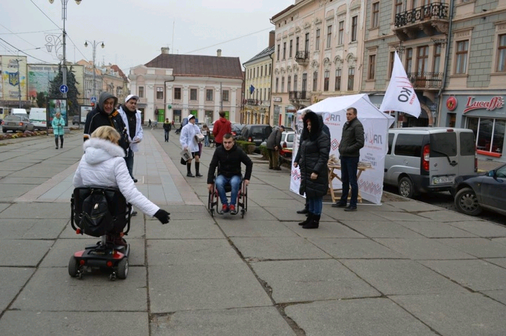 Аби відчути, як почуваються у місті маломобільні люди Чернівчани мали змогу випробувати бар’єри, з якими щоденно стикаються маломобільні люди. У ході експерименту потрібно було проїхатись у інвалідному візку на Центральній площі міста.