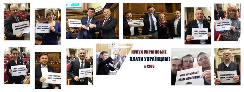 Парламент ухвалив за основу законопроект №7206 «Купуй українське, плати українцям!», що запроваджує для спеціалізованих предметів державних закупівель обов’язкове врахування критерію місцевої складової з вагою не менше 20% в структурі приведеної ціни. На практиці це означатиме, що на 100% український товар (зарплата, сировина, матеріали, компоненти, енергія, кредити тощо) матиме 25% цінову перевагу перед таким же, але на 100 % імпортним товаром, який не містить жодної української складової. Як зазначається, це додасть близько 1,1 відсоткового пункту до зростання ВВП, скоротить безробіття на 0,4 в.п. та імпорт на 4,4 в.п., що позитивно відобразиться на торговельному балансі, промисловому виробництві та доходах українців.