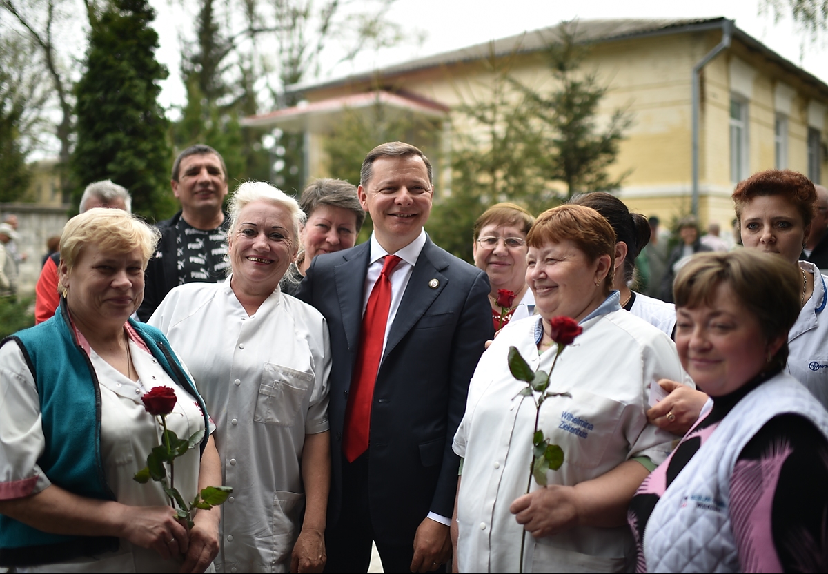 Олег Ляшко подякував працівникам медзакладу за відданість роботі, поспілкувався із ветеранами, які лікуються у шпиталі, та побажав їм міцного здоров’я. Політик зазначив, що не дасть нікому забрати у них Свято Перемоги.
