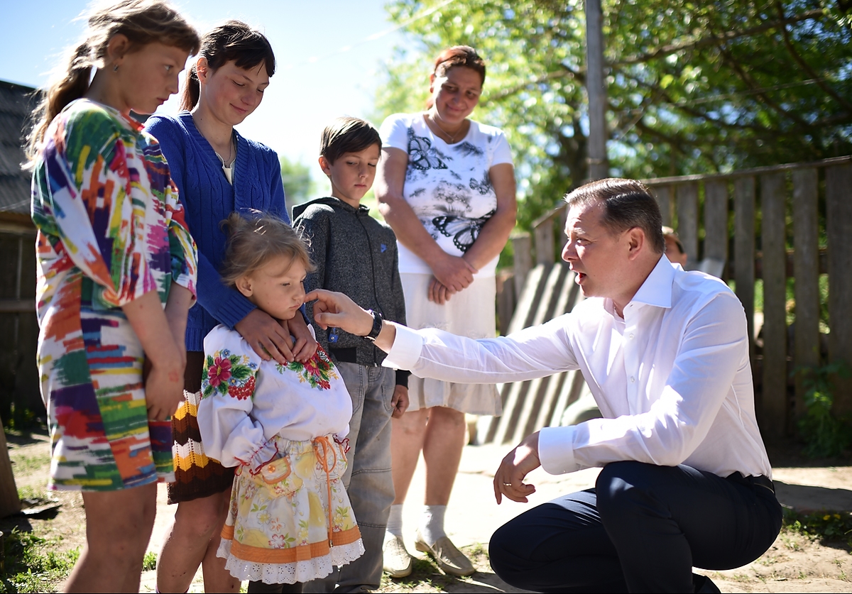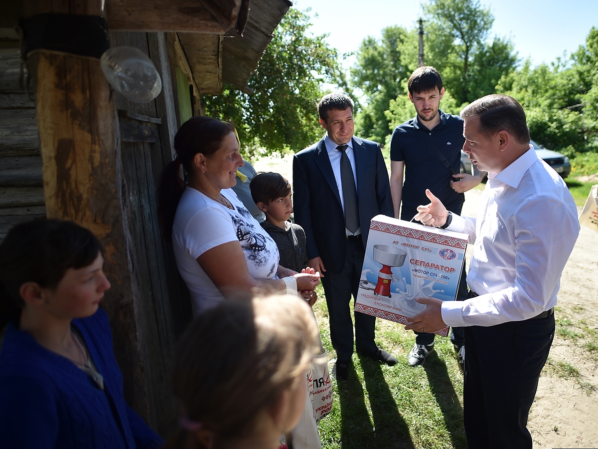Політик виконав обіцянку, яку напередодні дав у Запоріжжі, під час візиту на «Мотор Січ». Виготовлений на заводі сепаратор Олег Ляшко привіз родині Шокун з села Підлісне Козелецького району. Минулого року батько сімейства помер і мати Наталя Миколаївна сама виховує п’ятьох дітей, четверо з яких шкільного та дошкільного віку. Старша донька навчається в училищі, тож скоро отримає спеціальність і зможе допомагати родині. А тим часом молодші діти підробляють, випасаючи корів, яких на все село лишилося кілька десятків. У самої родини теж є корова. Тож сепаратор для переробки молока був вкрай необхідний.