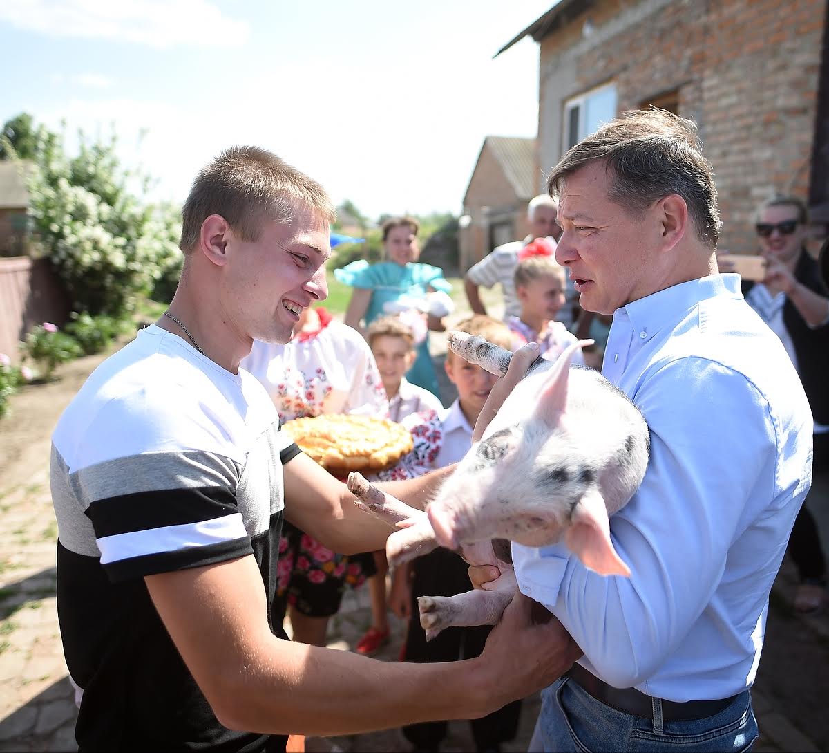 «Ви це порося не ріжте – воно породисте, - почав розмову Ляшко, тримаючи в руках тваринку. - Вам його передала власниця фермерського господарства Ірина. Хай воно виросте, дасть приплід. Потім сала мені привезете, пригостите. А я зроблю все, щоб ваші діти не їздили по Польщах, а достойно заробляли в рідній країні. Я вам привіз доїльний апарат, а мільйони людей його не мають. Це має бути державна політика. Не розпродаж землі та людей, як трудових рабів по закордонах, а створення умов, щоб в Україні годували свої сім’ї і заробляли. Людям треба доїльний апарат, холодильна установка, ціна на молоко, дотації на корів та заборона пальмової олії. Тоді розквітне село. Я поверну і ваших дітей, і всіх українців із-закордону додому!», - наголосив Ляшко.