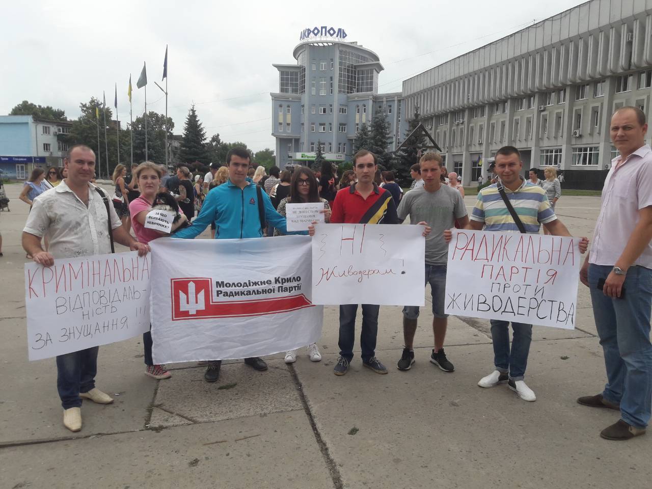 Через вбивство понад сотні собак в притулку для тварин в Миколаєві, Україною прокотилася хвиля протестів, до яких за дорученням лідера Радикальної партії Олега Ляшка долучилися і партійні активісти в різних містах. Вимоги у всіх учасників протестів були однакові – покарати винних у злочині та заборонити вбивства тварин. Відповідне звернення підписали всі учасники акцій і направили до Президента.