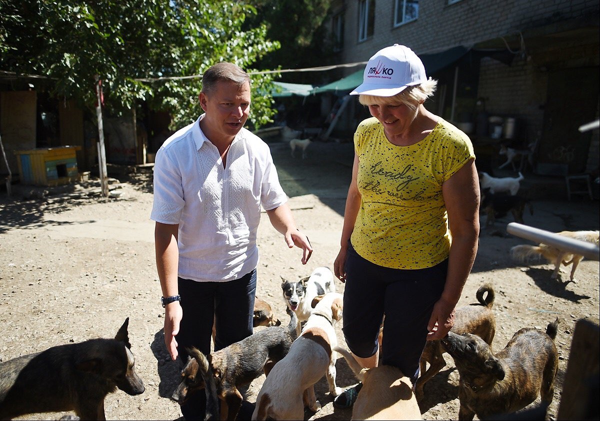 В Україні багато бродячих собак та бродячих людей, але ніхто не має права позбавляти життя ні тих, ні інших. На цьому наголосив лідер Радикальної партії Олег Ляшко в притулку для собак у місті Олешки Херсонської області. Під опікою волонтерів ГО «Шанс» - понад 150 тварин. Захисники тварин кажуть, що тримається все на їхньому «голому» ентузіазмі. Політик привіз великі запаси корму, нашийники і медикаменти та пообіцяв допомогти із вирішенням питання відведення землі під притулок.