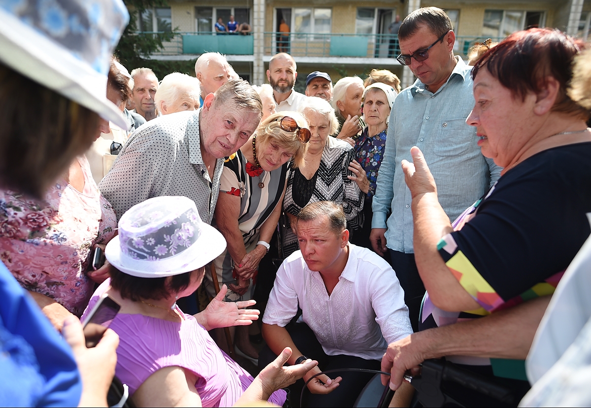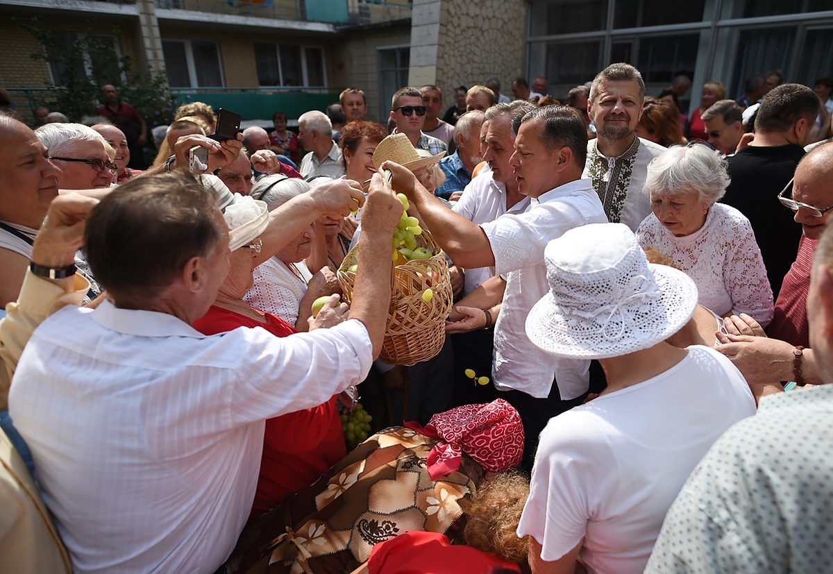 У свято Яблучного Спаса Олег Ляшко приїхав провідати ветеранів війни, що проходять лікування у центрі медико-соціальної реабілітації у селі Циблі на Київщині. Їх у медзакладі – 576 чоловік. Політик привіз щойно освячені яблука, виноград і мед, а також пообіцяв вибити кошти на ремонт 3-го корпусу, який чекають тут понад 5 років.