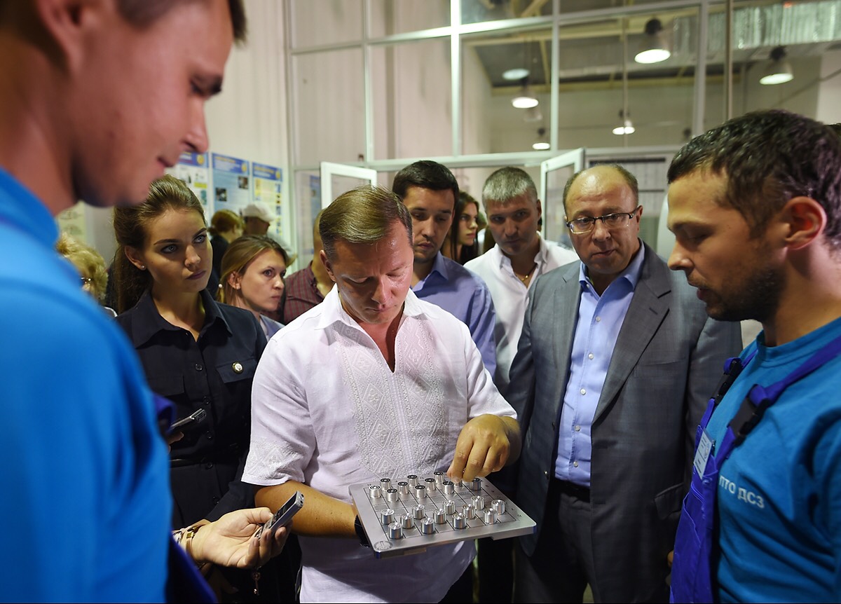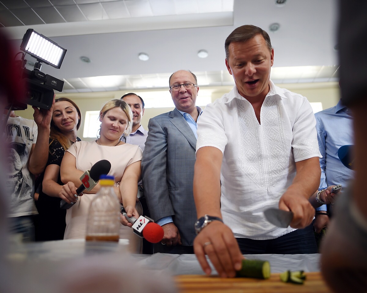 «Я все роблю на відмінно!». На ярмарку професій у Харківському центрі професійно-технічної освіти Олег Ляшко спробував накладати рідкі шпалери, різати овочі і виготовляти деталі на фрезерувальному станку. Готовий виріб від Олега Ляшка може бути навіть складовою космічного корабля, вважає політик.