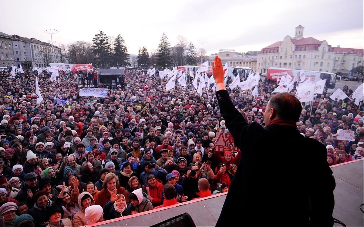 Близько 5000 людей – від старого до малого прийшли на зустріч з Олегом Ляшком на центральну площу у Чернігові, де політик підбив підсумки своєї передвиборчої кампанії. Політик вийшов на сцену зі всією парламентською фракцією під оплески чернігівців і вигуки «Олег Ляшко – народний Президент!».
