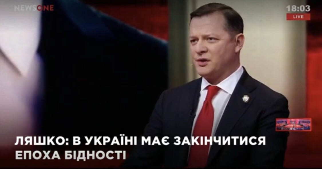 В ефірі ток-шоу «Український формат. Передмова» на телеканалі NewsOne лідер Радикальної партії Олег Ляшко заявив, що його не здивував великий відсотковий розрив між Петром Порошенком і Володимиром Зеленським на президентських виборах. Він підкреслив, що українці втомилися від жадібності і бідності, до яких призвела політика нинішнього Президента.