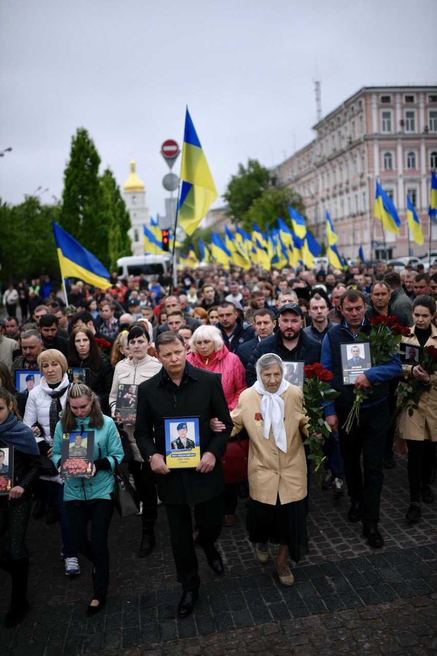 На Софійській площі столиці тисячі людей зібралися на громадську акцію «Український безсмертний полк», щоб вшанувати пам’ять ветеранів всіх війн. Батьки та вдови загиблих на Донбасі взяли з собою портрети своїх рідних. Олег Ляшко, який очолив колону учасників акції, тримав в руках фотографію свого 23-річного загиблого земляка з Чернігівщини, Івана Євдокименка, у якого був позивний «Ляшко». Присутній на акції батько Героя пан Микола розповів, що сина на фронті так називали за прямоту і за те, що доводиться земляком відомому політику.