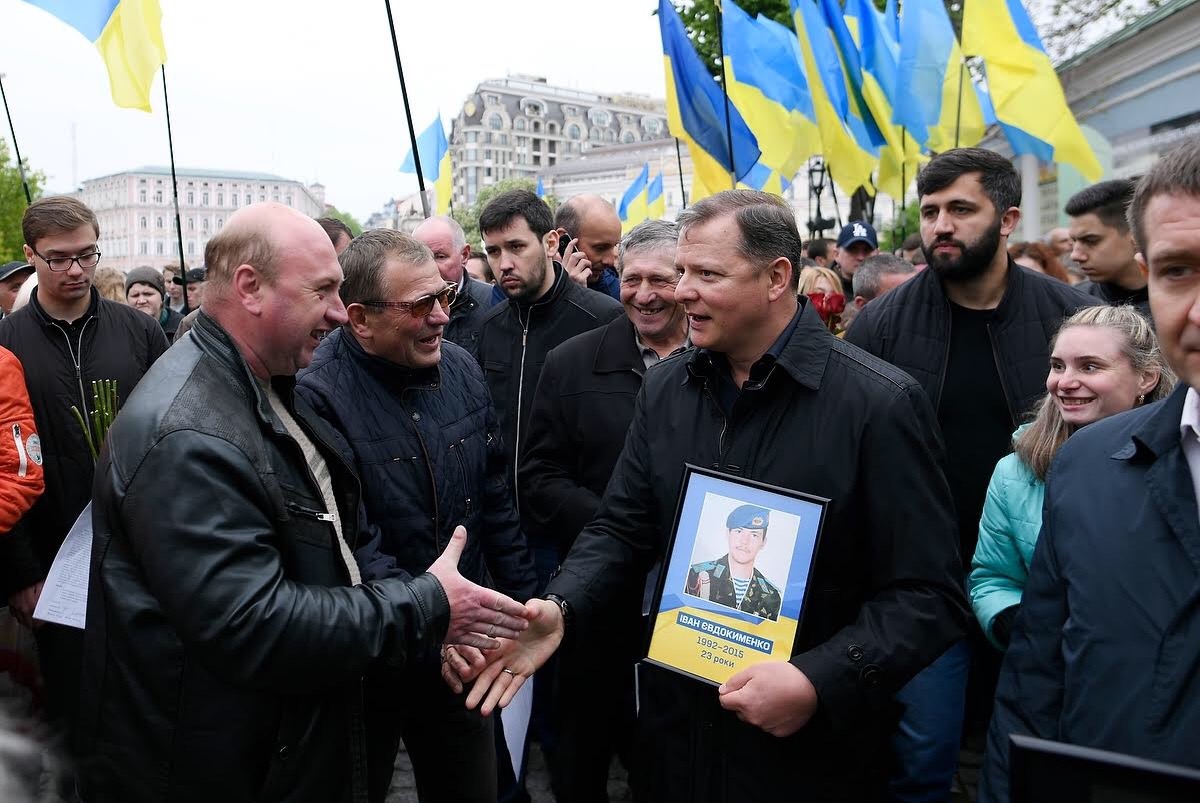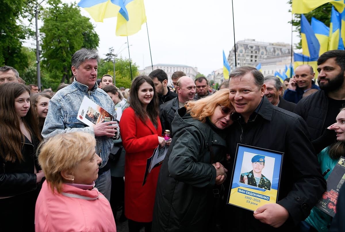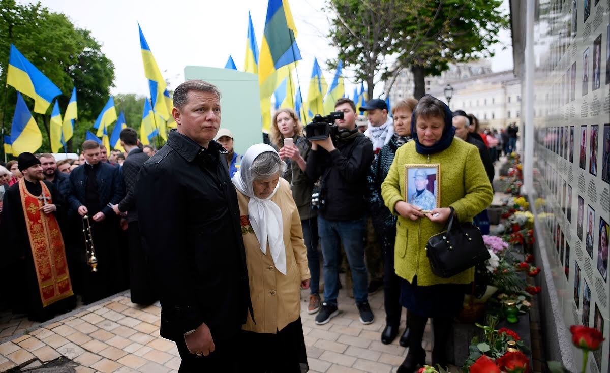 Учасники акції «Український безсмертний полк» пройшлися колоною від Софійської до Михайлівської площі, де зупинилися біля стіни пам'яті для спільної молитви за Україну та загиблих на фронті. Під час ходи до Олега Ляшка підійшла мати загиблого бійця на Донбасі Галина Поліщук. Жінка у чорній хустці та почорнілим від горя обличчям міцно тримала портрет молодого хлопця в чорній рамці, стоячи біля стіни з фотографіями загиблих учасників війни.