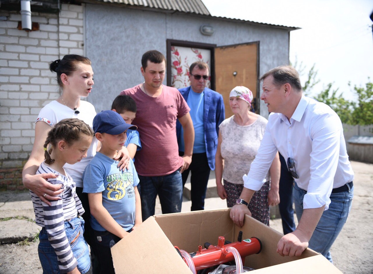 «Давайте допоможемо цій багатодітній сім’ї. В першу чергу, треба зорати город, щоб посадити городину і вона зійшла. Далі – пошукайте землю, щоб дати цій родині 2 гектари, які визначені за законом. А взагалі – проведіть якусь нараду і обговоріть проблеми багатодітних сімей, які у вас є, та допомагайте їм. А я теж долучуся по вашій ОТГ і щось допомагатиму», - дав доручення Ляшко.