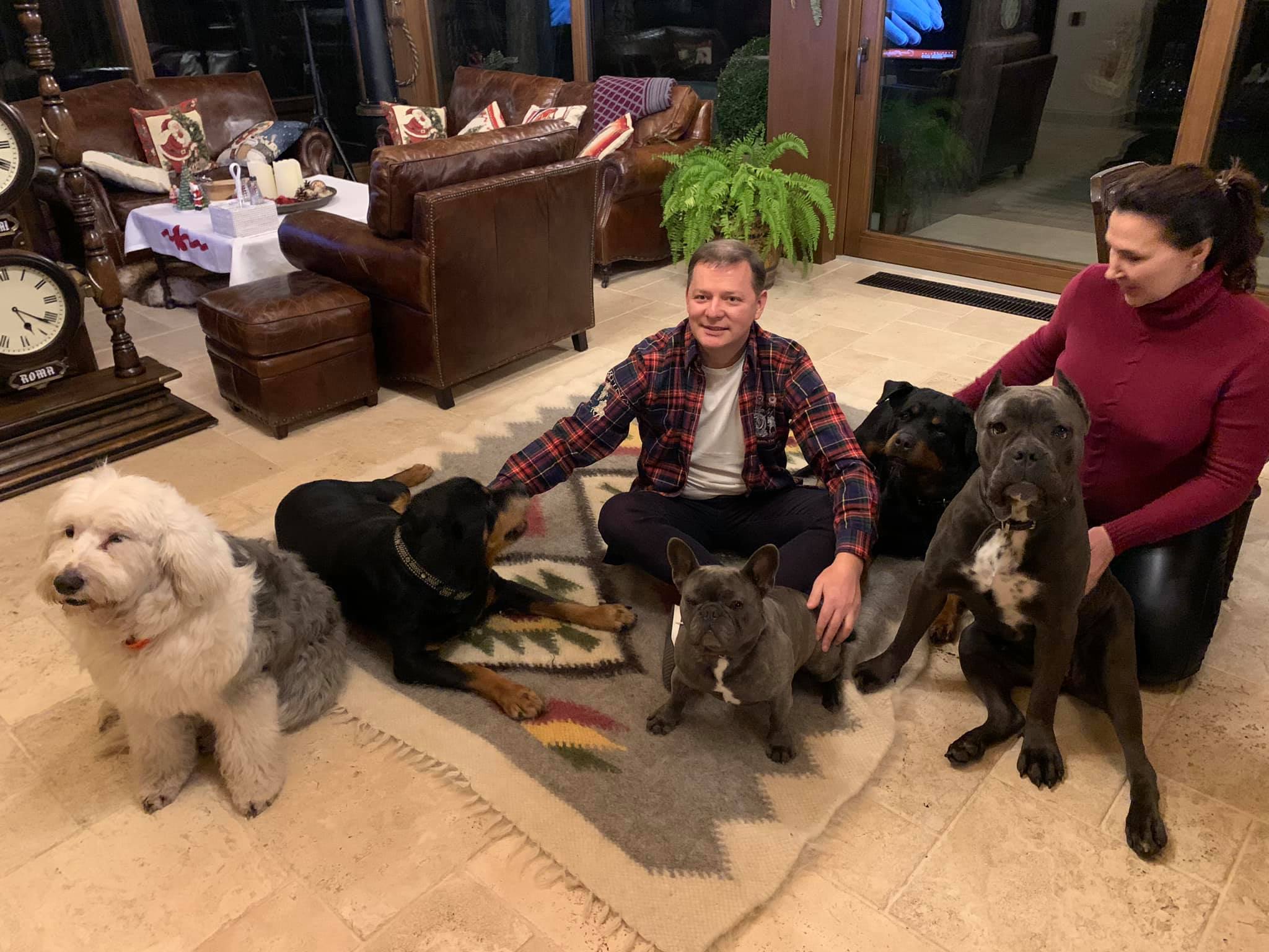 Це 11-тий собака, який живе у політика. Трьох з них він взяв з вулиці. Лідер РПЛ закликав всіх українців слідувати його прикладу і брати чотирилапих з притулків.